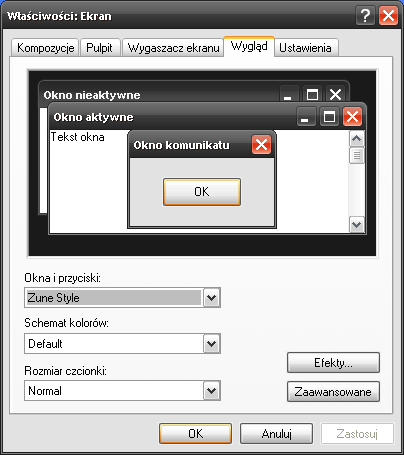 An official theme from Microsoft created for the Zune media player. It features a black taskbar with orange accents. The style is similar to Royale but with a unique color scheme.
